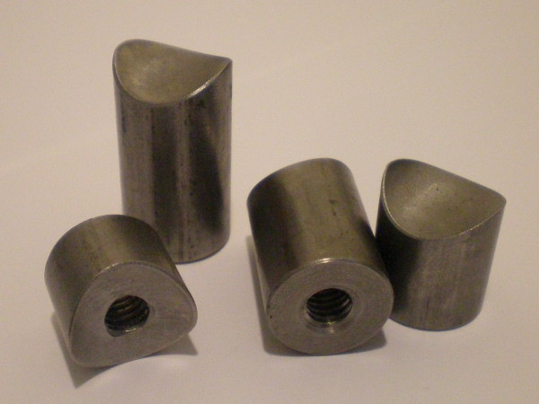 These are our Coped Threaded Bungs. One end is coped or fish mouthed to fit over a piece of tubing or solid bar. This leaves you with a great fit over round stock and a large area for a strong weld seam for an extra strong joint. We commonly use them anytime we need a threaded standoff or mount for a chassis or off of any other tube structure. The standoff height is the effective height that the threaded surface will be from the edge of the tubing..