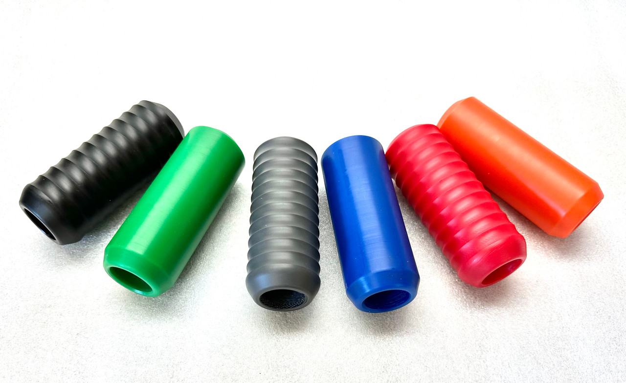 These are a direct replacement for our delrin slider ends used on our Upper Shock Sliders and 2018 and up Passenger Peg Frame Sliders. These are similar to our standard slider but made from Grey Delrin, so they can be a direct replacement for any of the standard black ones with reuse of the same hardware. They are available in the smooth or gripple outer surface. These can also be used as a universal slider end if you are fabing up your own cage.