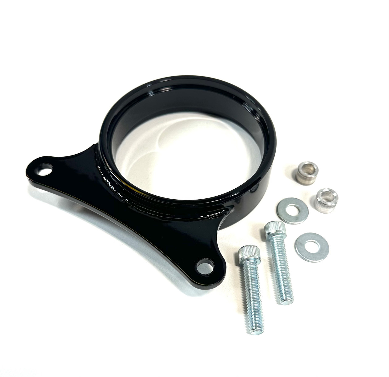 For those running our pullback riser with the stock upper clamp on the 2022 to current Low Rider S and other models, this can put the gauge at an angle that is hard to read. Our new speedo mount will reduce the angle of the gauge face so that on our 2" pullback risers with this gauge mount the gauge face will be back to the stock angle. This can also be used on many other HD gauges as long as you use the 2022 and up Low Rider S back cover. The gauge does require the use of a standard black upper top clamp the same used on most earlier dyna and sportster models, or are available as an addition to this kit. The bracket is made from mild steel and powdercoated with either a gloss black or wrinkle black finish, and comes with the longer bolts needed to install.